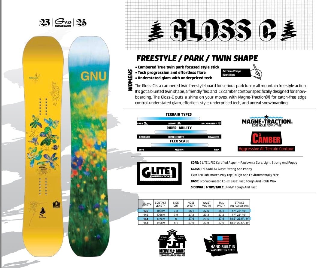 GLOSS Cは本格的なパークファンやオールマウンテンなフリースタイルアクションに適したキャンバー付きツイン・フリースタイルボードで、ブラントしたツインシェイプとソフトなフレックス、それにC3キャンバーを備えている。マグネトラクションは正確なアプローチと硬いバーンに対応できます。控えめなデザイン、ファンなスタイル、低価格で高品質なテクノロジー、そして非現実的なスノーボード!